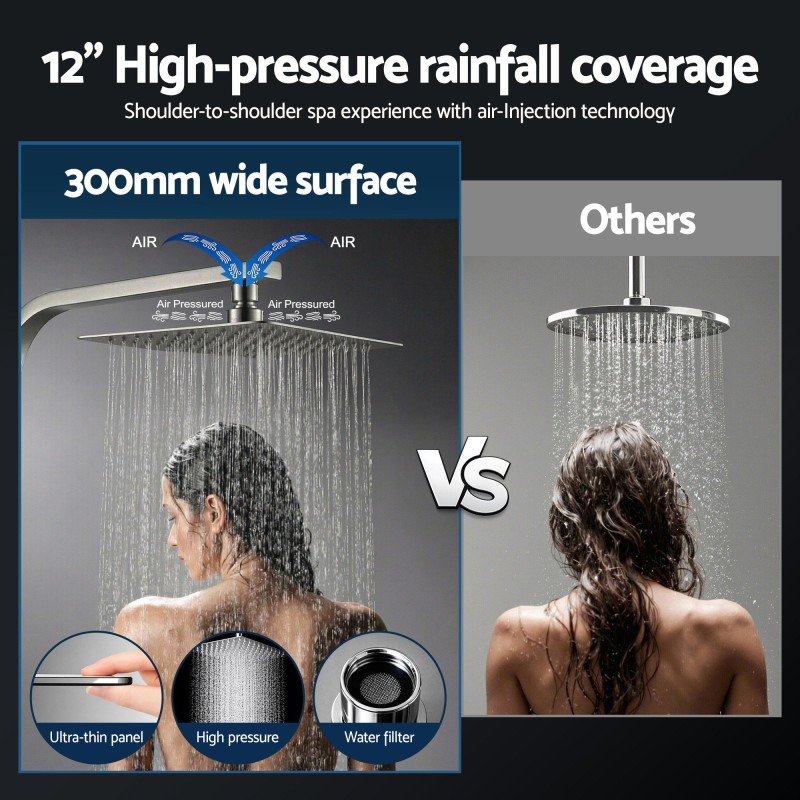 - Massive 300mm 12" overhead rainfall shower for full coverage