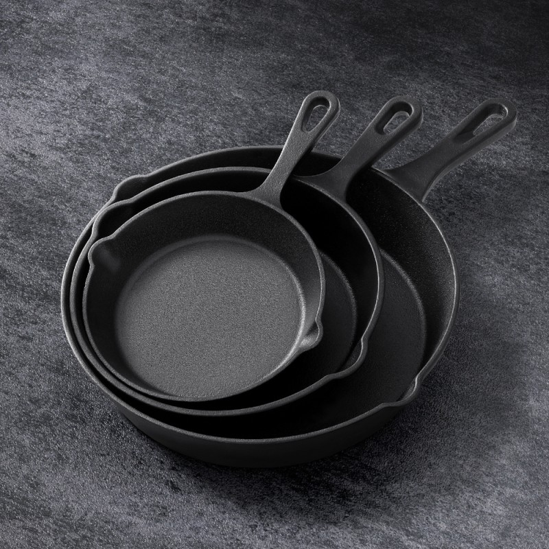Upgrade your kitchen with the 5-Star Chef Cast Iron Non-Stick Frying Pan Set. Featuring three versatile pans in classic cast iron with a sleek black finish, each delivers fast, even heat transfer and excellent heat retention. PFOA- and PIFE-free with no chemical coating, these pans ensure safe, healthy cooking every time. Double pouring spouts offer convenient draining and serving, while compatibility with all stove tops makes them a must-have for any home chef.