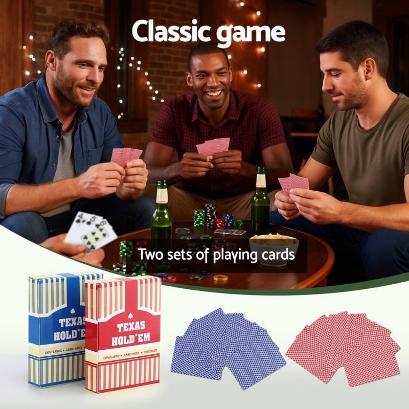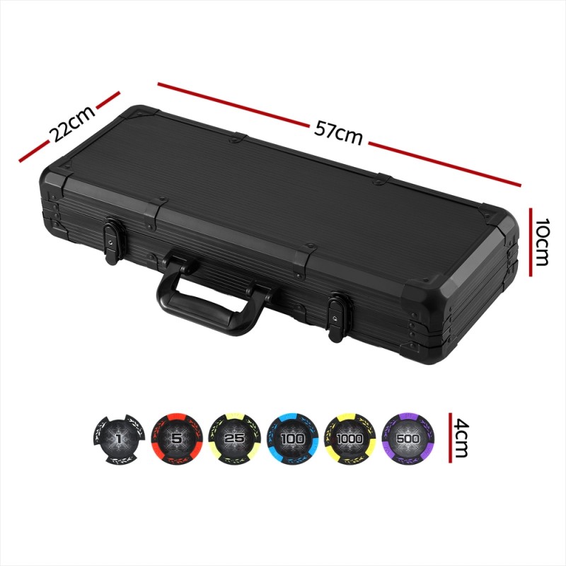 Elevate your card nights with Poker Chip Set 500PC. This set offers the thrill of a casino experience, featuring 14g heavyweight chips with a double injection iron core for an authentic feel. Neatly housed in a robust aluminium case, it's ideal for easy transport and secure storage. Complete with Texas Holdem chips, dealer and blinds buttons, five red dice, and two decks of playing cards, this professional-grade set has everything needed for an unforgettable game night. With its lockable case and premium build, this poker set ensures both style and convenience.