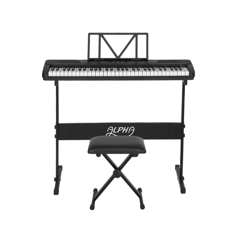 Unleash your musical creativity with the Alpha 61-Key Electronic Piano Keyboard. Perfect for both beginners and seasoned players, this keyboard features 61 touch-sensitive keys, 430 timbres, and 300 rhythms. Learn effortlessly with 50 demo songs and three-step lessons. Record and playback your masterpieces, and enjoy various effects and chord options. The package includes an adjustable stand, stool, sheet music holder, and sustain pedal. With a sleek black design and intuitive LED display, the Alpha Keyboard is your gateway to musical exploration, backed by a 1-year warranty.