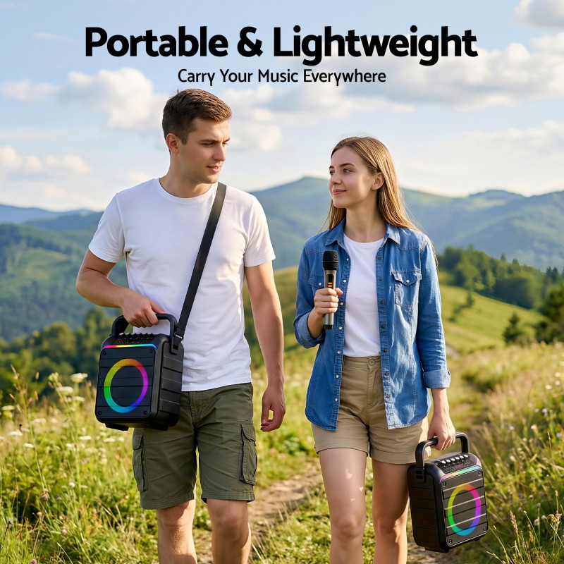 Turn every gathering into an unforgettable event with the Alpha Portable Karaoke Machine. This professional multi-function system combines power, clarity, and versatility, filling any room with high-fidelity audio. It's the ultimate entertainment centrepiece, perfect for parties, vocal practise, or public presentations. Featuring two wireless microphones, Bluetooth 5.3, and vibrant LED lighting, it captivates audiences both young and old. Adjust bass and treble, prioritise microphones, and enjoy seamless control with the remote. Lightweight and portable, it’s designed for those who demand quality and fun in one sleek package.
