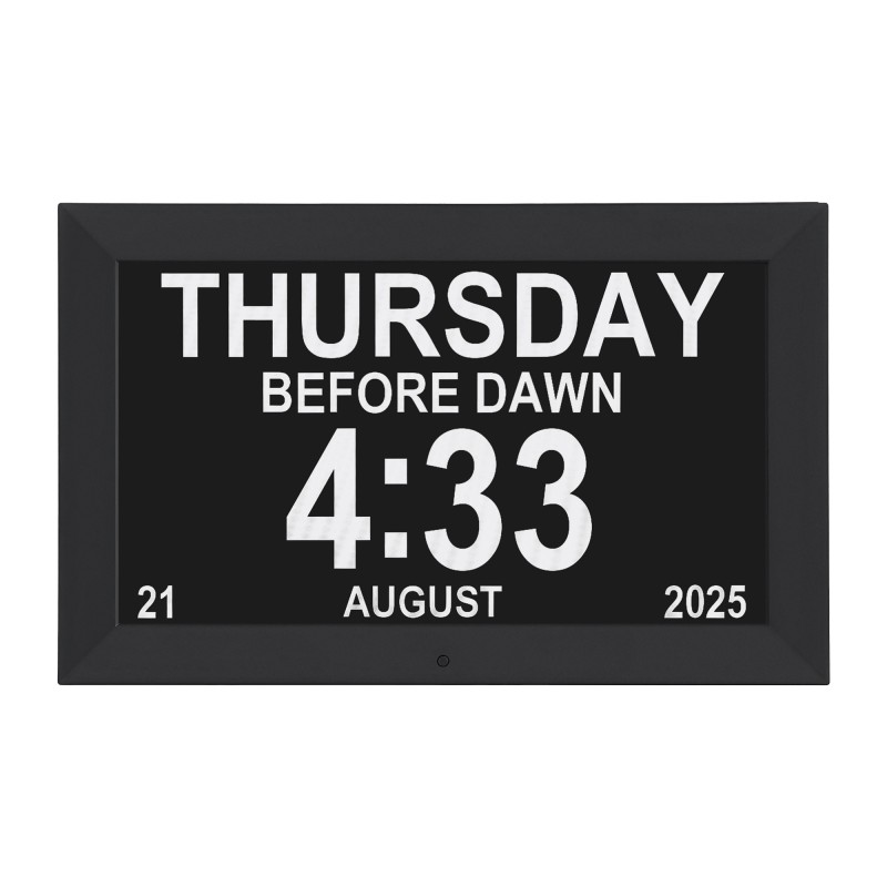 The Artiss 10" Digital Day Clock is an essential tool for simplifying daily life, perfect for seniors and busy households. Its large, 10-inch LCD offers clear visibility of time, date, and reminders, with 4 customised layout options. Equipped with 21 alarm settings and 16 medication reminders, it ensures you stay on schedule. Supporting 10 languages, it also functions as a digital photo frame. Enjoy flexible placement with desk or wall-mount options and auto-dimming for optimal viewing any time of day. With user-friendly remote control, the Artiss clock blends practicality and style effortlessly.