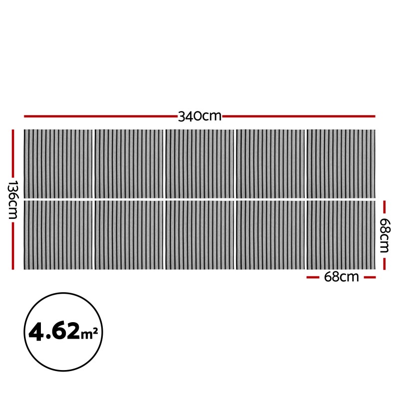 Refresh your walls with the Artiss 10PCS Peel and Stick Wall Panels. Each lightweight 68x68cm panel features a self-adhesive backing for quick tool free installation on most smooth surfaces. The grey textured finish adds modern depth to living rooms bedrooms offices or studios and panels are simple to cut for custom layouts around windows doors and fittings.