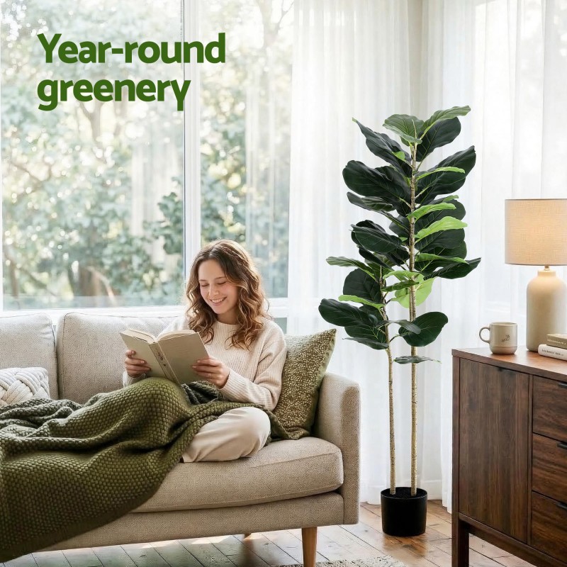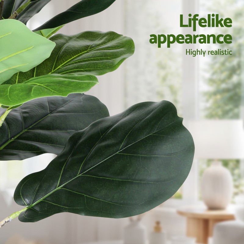 Bring year round greenery to your home or office with the Artiss 150cm Artificial Fiddle Tree. This lifelike faux plant features realistic fiddle leaf foliage on flexible branches, sits in a stable weighted cement pot and requires no watering or trimming. UV resistant materials keep colours vivid for indoor or sheltered outdoor use and the piece is easy to clean with a damp cloth for a pristine look without maintenance.