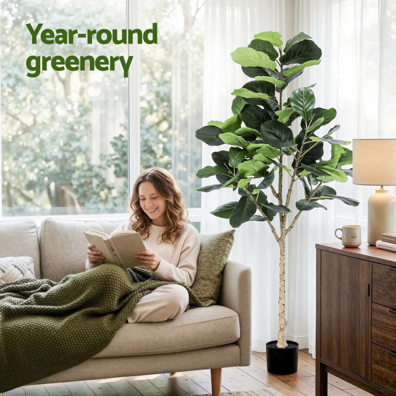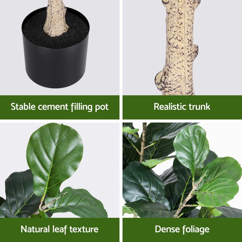 Bring lasting greenery to your home with the Artiss 180cm Artificial Fiddle Tree. This lifelike faux plant delivers the look of a premium indoor tree without the upkeep—no watering or trimming—and sits in a sturdy weighted cement pot for stability. UV resistant foliage keeps colour intact for indoor or protected outdoor spots while flexible branches allow easy shaping to suit your space. Built from durable non-toxic materials it cleans with a simple wipe and sets up tool free for instant decorative impact.