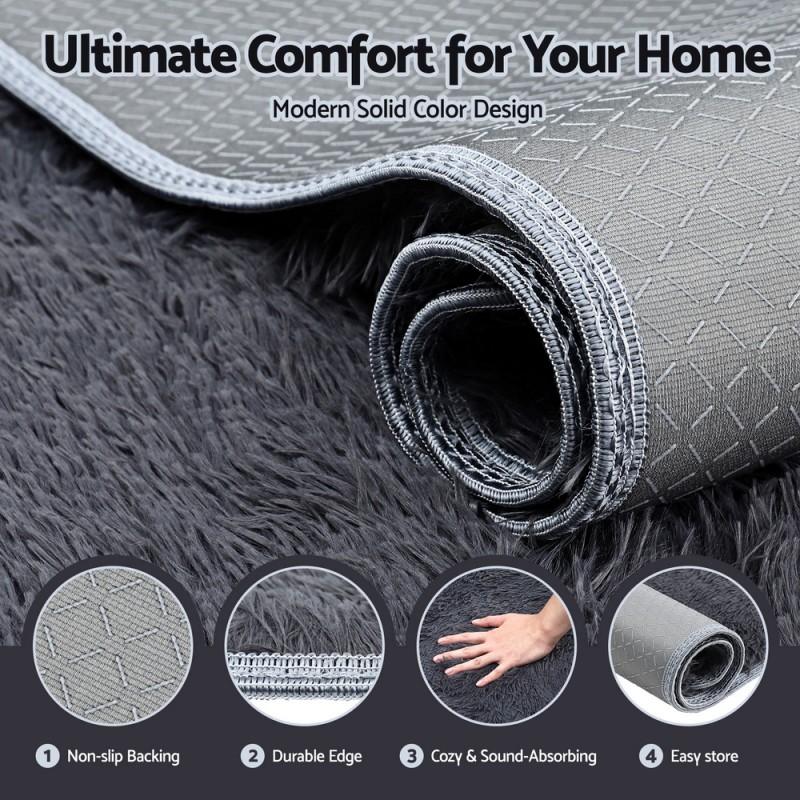 Transform your living space with the Artiss Floor Rug, a luxurious addition that provides both comfort and style. This plush shaggy rug features a deep, soft high-pile cushioned with built-in foam, ensuring a gentle and cosy feel underfoot. The sophisticated grey hue complements any decor, while the anti-slip granule backing ensures safety on any flooring. Made from durable, wear-resistant polyester, this rug is naturally sound-absorbing, skin-friendly, and non-shedding, making it a perfect choice for any living room or bedroom. Easy to spot clean, this rug combines elegance with practicality.
