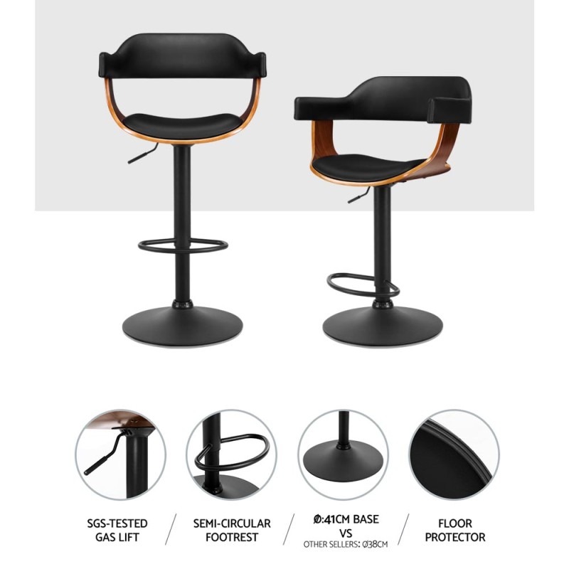 Elevate your home with the Artiss 2x Bar Stools, designed for seamless integration into any modern setting. Each stool showcases an elegant wooden seat structure, a sleek black powder coated finish, and a plush PU leather padded seat for superior comfort. Enjoy the convenience of a 360° rotatable seat, sturdy steel base, handy armrests, and a sophisticated chrome gas lift lever. With a heavy-duty footrest and corrosion-resistant build, these bar stools combine contemporary style with lasting durability for your kitchen or bar area.