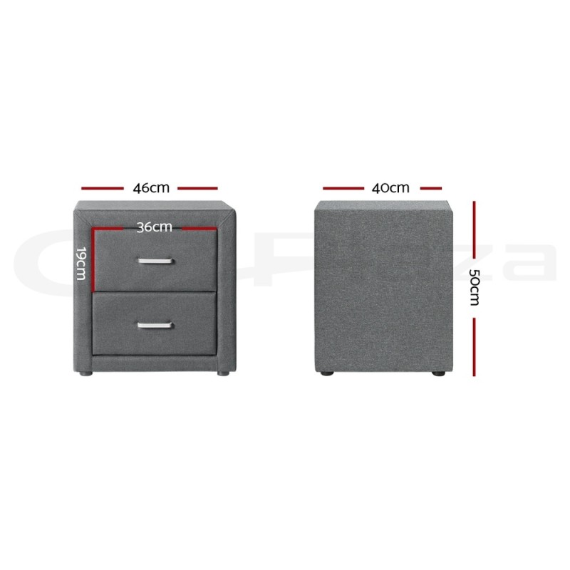 Introducing the Artiss CADEN Grey Bedside Table, a chic and functional addition to any bedroom. Crafted with elegant linen fabric, this table not only complements modern interiors but also offers essential storage with its two spacious drawers. Built with a sturdy MDF frame and featuring contemporary aluminium handles, it's as durable as it is stylish. Whether holding a lamp, your favourite book, or a morning coffee, it's the perfect bedside companion. Its versatile design also makes it an excellent side table for any room. Elevate your home decor with this sophisticated piece and impress your guests with your impeccable taste.