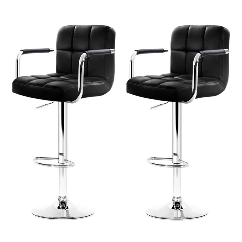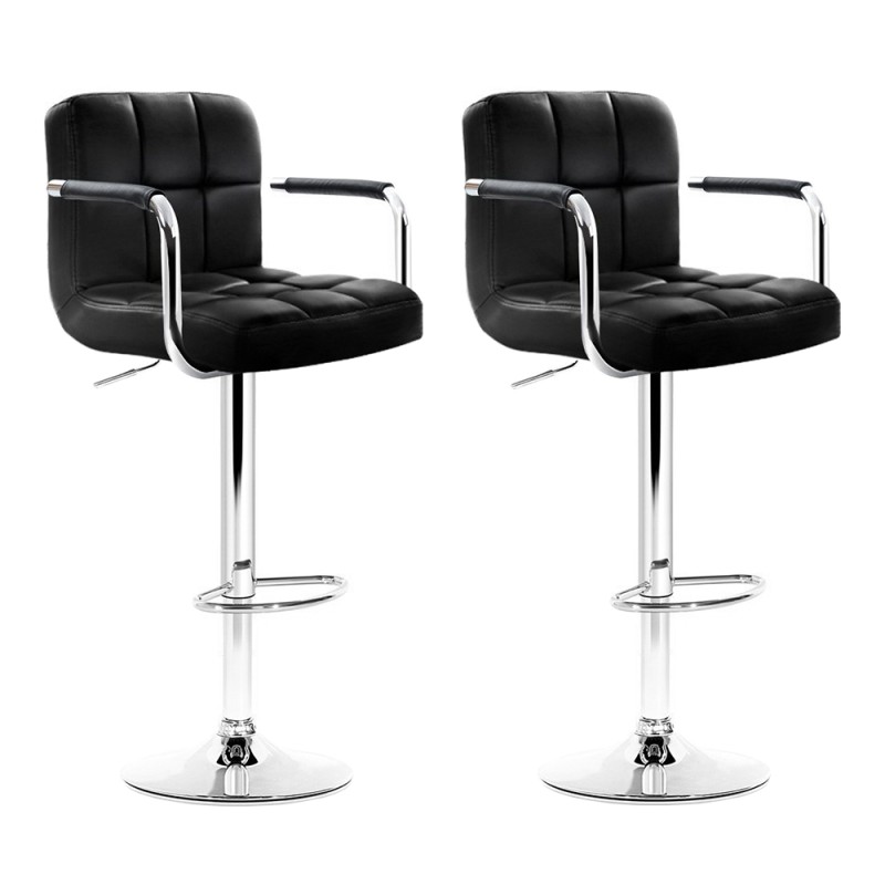 Elevate your home decor with the Artiss 2x Bar Stools, a perfect blend of style and comfort. These modern bar stools, upholstered in premium PU leather, offer an extra thick foam padded seat for ultimate comfort. The ergonomic armrest and semicircular footrest provide a relaxed sitting experience, while the 360-degree swivel seat allows for easy movement. The height is adjustable with an SGS-tested gas lift, and the 41cm diameter steel base with a corrosion-resistant chrome finish ensures stability and durability. A floor protector under the base keeps your floors scratch-free. Ideal for any kitchen or dining setting, these bar stools are a sophisticated addition to your home.