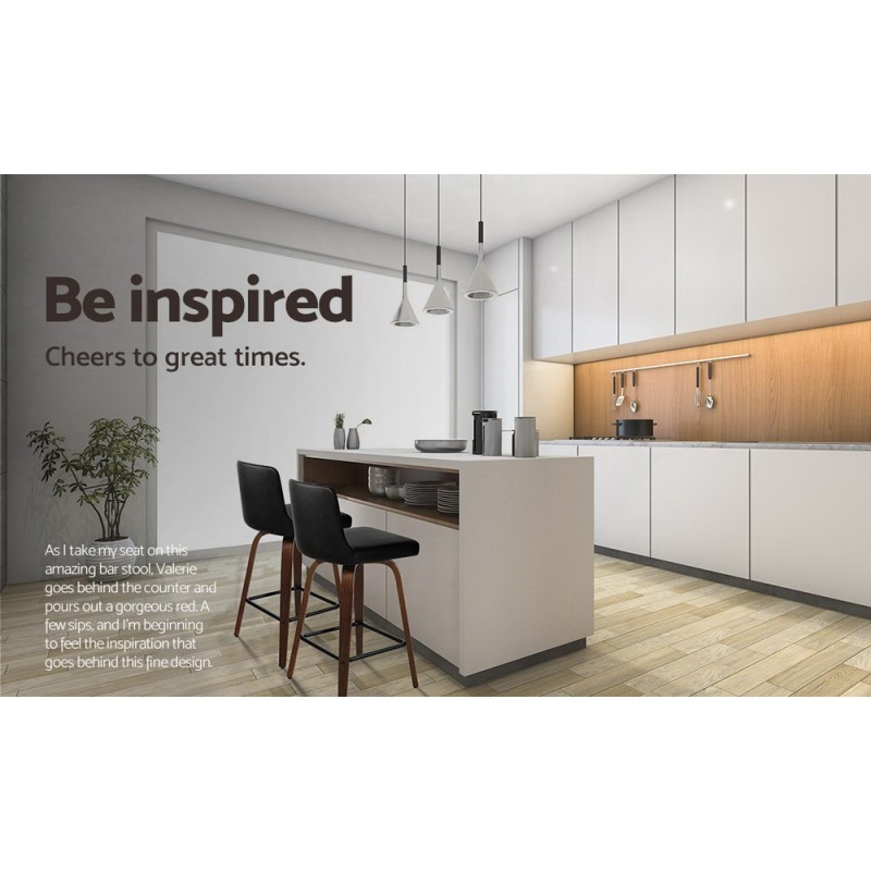 Elevate your home bar or kitchen counter with the Artiss 2x Bar Stools, where style meets comfort. These exquisite stools boast a harmonious blend of wood, metal, and deluxe PU leather, meticulously crafted with a solid plywood frame in a stunning black finish. Experience ultimate comfort with a 6cm thick, 360-degree swivel faux leather seat and a padded, curved backrest. The mid-height backrest provides excellent support, while anti-slip rubber pads protect your floors. A chrome steel footrest adds a touch of modern elegance to this classic design.