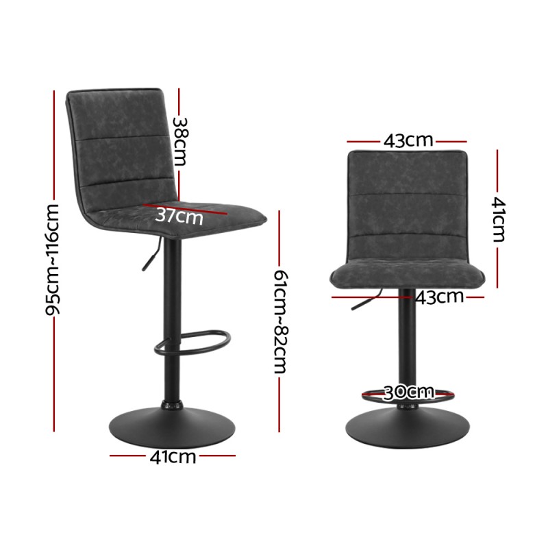 Elevate your home bar or kitchen with the Artiss 2x Bar Stools, offering a blend of contemporary style and exceptional comfort. Upholstered in sleek grey PU leather, these stools feature an extra thick foam padded seat and a supportive high backrest for ultimate relaxation. The 360-degree swivel seat and SGS-tested gas lift allow for easy height adjustment and movement, while the semi-circular footrest provides added support. The corrosion-resistant black powder-coated finish and 41cm diameter steady base with a floor protector ensure stability and protect your floors. With a weight capacity of 150kg, these bar stools are as durable as they are stylish.