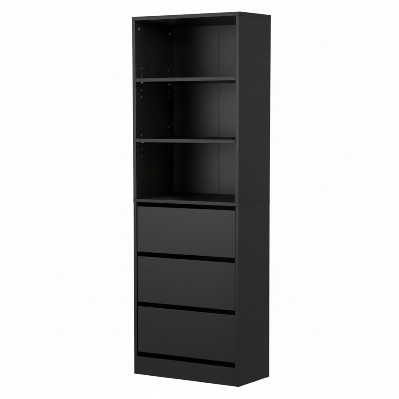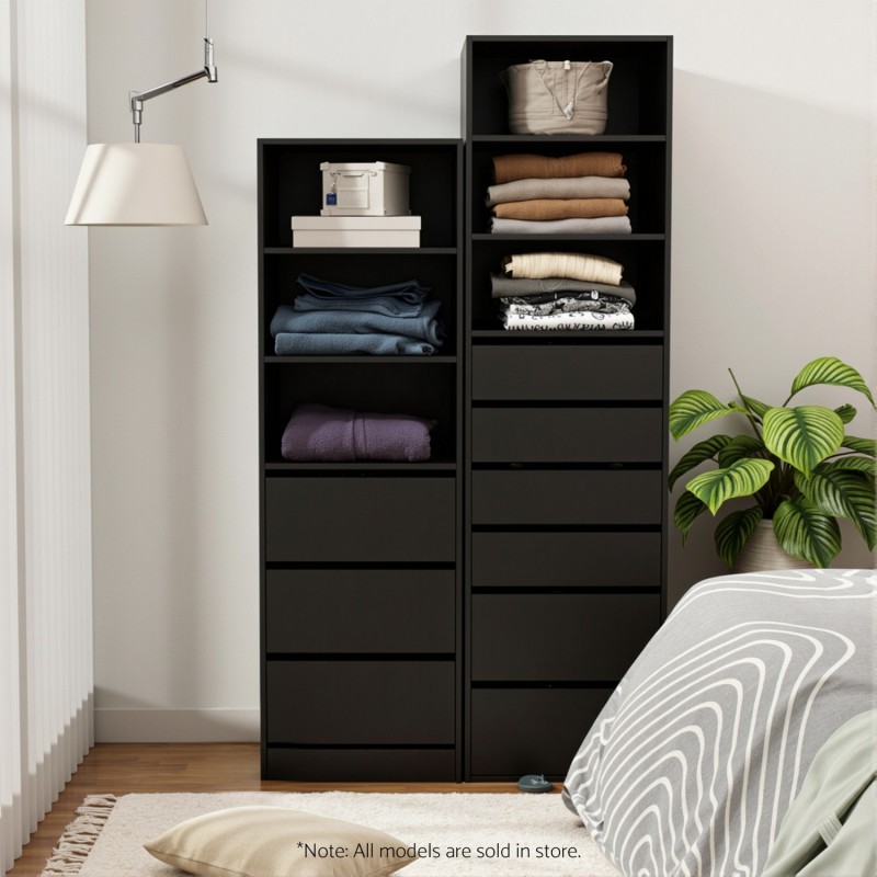 The Artiss 3 Chest of Drawers Tallboy Cabinet in sleek black is the perfect blend of style and functionality for modern Australian homes. This versatile storage solution boasts a handle-free design, three adjustable shelves, and three smooth-gliding drawers, making it ideal for organising clothing, linens, or accessories in bedrooms or hallways. Crafted from particle board with a paper veneer, it offers a high weight capacity for heavy loads. Easy to assemble and maintain, this cabinet includes a wall attachment for enhanced stability. Please ensure safety by securing this furniture with the provided anchor device.