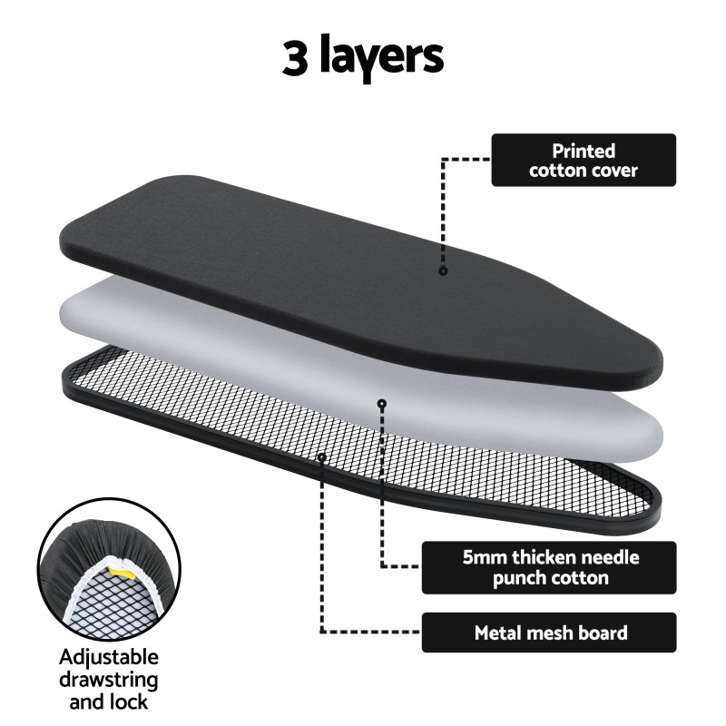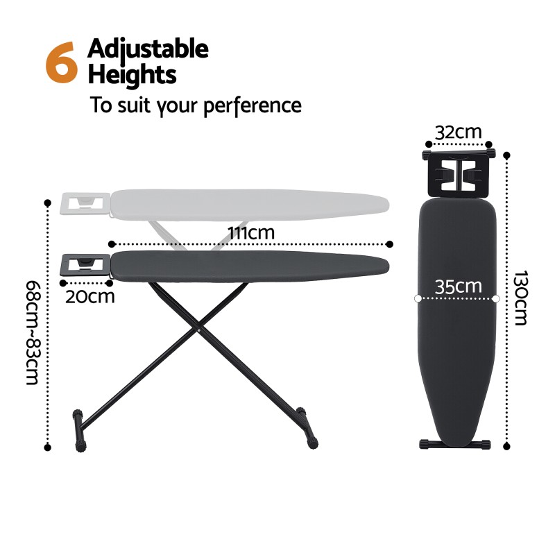 The Artiss Ironing Board is built for modern homes needing dependable ironing without the bulk. A heavy‑duty steel frame pairs with a breathable metal mesh base and a premium three‑layer cotton cover to deliver stable fast heat release and crisp results. With six height settings and a handy iron rest this foldable board stores upright to save space while supporting everyday ironing tasks up to 10kg.