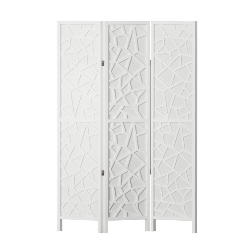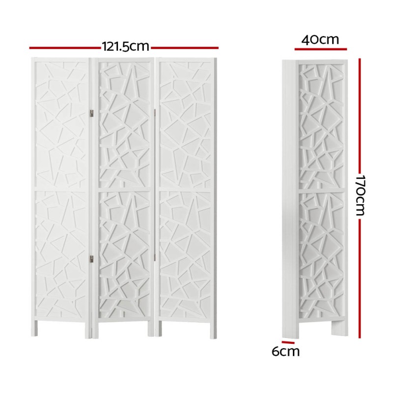 Transform your living space with the Artiss 3 Panel Room Divider Screen in Clover White. Perfect for creating privacy or sectioning off areas, this stylish divider offers a practical solution without the need for permanent walls. Crafted from solid pine wood with a durable, breathable non-woven fabric, it boasts eco-friendly, non-toxic paint that resists cracks, fading, and water. Lightweight and portable, its foldable design and two-way metal hinges ensure stability and ease of use. Enjoy effortless assembly and a one-year warranty.