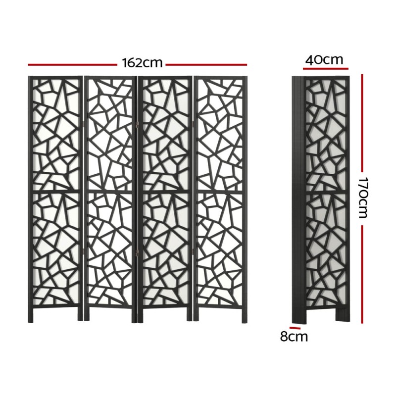Transform your space effortlessly with the Artiss 4 Panel Room Divider Screen. Perfect for creating privacy or dividing a room without permanent walls, this stylish screen features solid pine wood construction with durable, breathable non-woven fabric. The eco-friendly, non-toxic paint resists cracks, fading, and corrosion, ensuring long-lasting beauty. Lightweight and portable, it folds easily for versatility. Enjoy easy assembly and stability with two-way metal hinges. Comes with a one-year warranty.