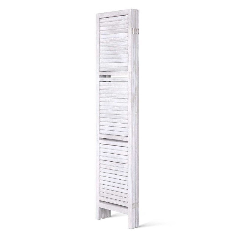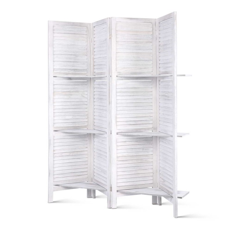 Enhance your living space with the Artiss 4 Panel Room Divider Screen, perfect for creating private areas or dividing rooms with style. Crafted with artistic flair, this divider features a solid Paulownia wood frame and two-way metal hinges for strength and durability. The eco-friendly, non-woven fabric screen is breathable, waterproof, and resistant to cracks and corrosion. Lightweight and foldable, it's easy to move and store. With two tie display shelves, it adds practicality and elegance to any room. Transform your home with this versatile and stylish divider.