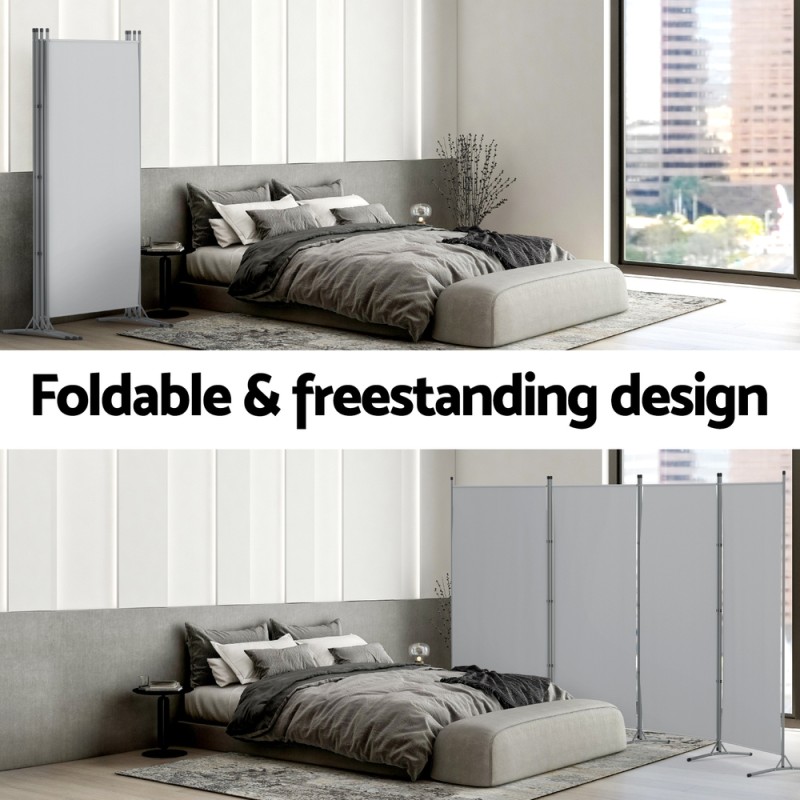 The Artiss 4 Panel Room Divider Screen is the perfect solution for crafting private spaces in your home or office. With a robust powder-coated metal tube frame, this divider is both sturdy and durable. Its foldable design ensures easy storage, and detachable connectors allow flexible positioning to suit your needs. Lightweight and portable, it can be effortlessly moved between rooms. While providing privacy, it allows some light to pass through for a subtle separation. Ideal for adding style and function, this grey divider is an excellent choice for any environment.