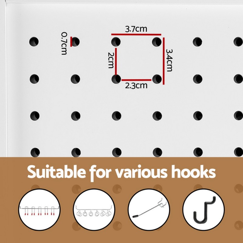 - Pegboard design with 7mm holes for multiple standard pegboard hooks