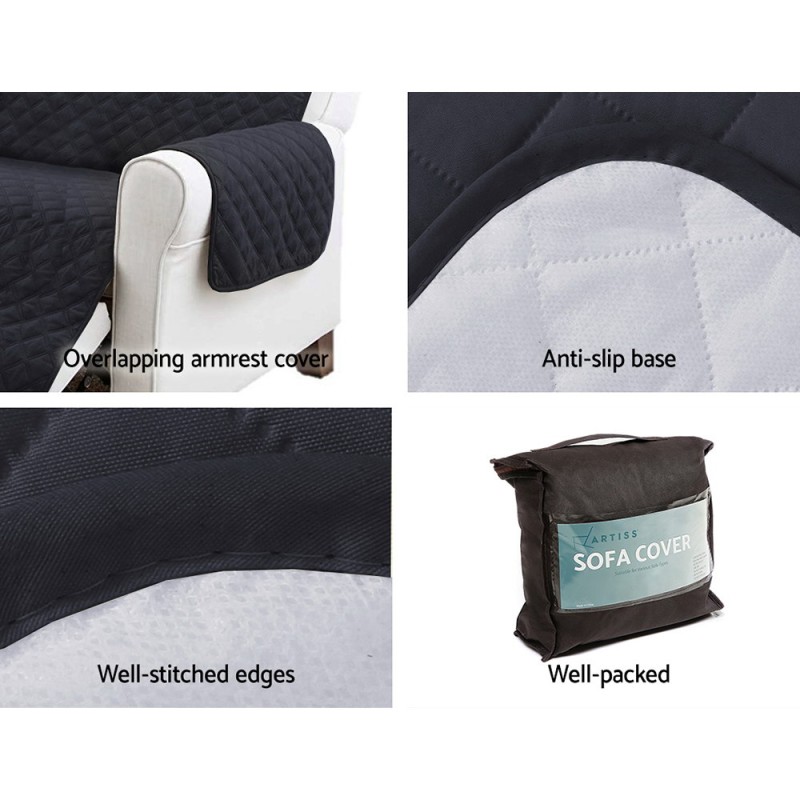 Transform your sofa with the Artiss 4-Seater Sofa Cover in Dark Grey. Designed for style and protection, this cover features a plush, diamond-quilted microfibre surface with a TPU waterproof coating and cotton fibre filling for all-day comfort. Its 100% water-resistant fabric handles spills, stains, pet hair, and muddy feet with ease—simply machine wash for a fresh look. Easy to install with flaps over sofa arms and an anti-slip base, it fits snugly and stays in place, giving your sofa an instant facelift with sophisticated charm.