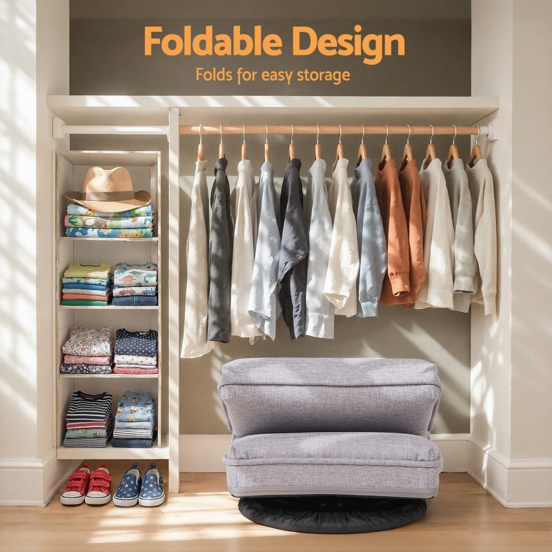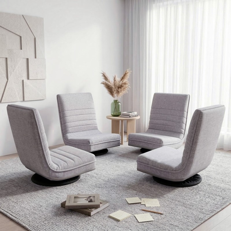 Upgrade floor seating with the Artiss 4PCS Swivel Floor Chair set. Each generously cushioned chair features a reinforced metal frame and a 360-degree swivel base for smooth movement. The adjustable back and folding design make these chairs ideal for gaming sessions reading nooks meditation or compact living where space is limited. Breathable fabric and a removable base cover protect floors while high resilience foam keeps comfort for extended use. Set of four in neutral grey suits modern interiors.