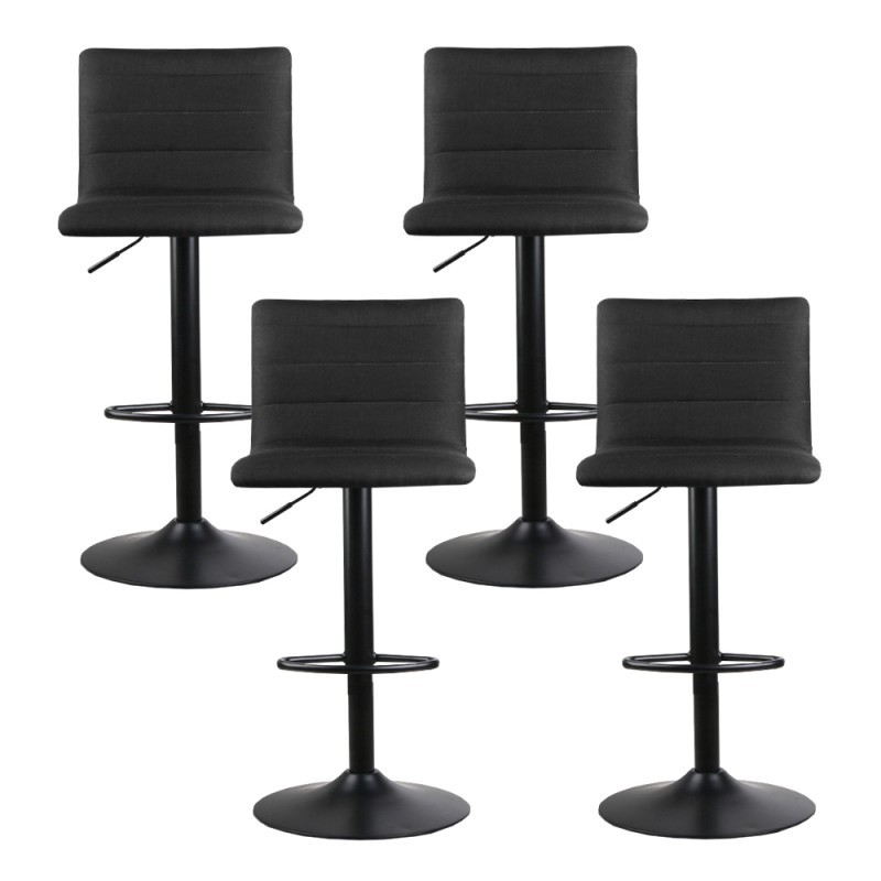 Elevate your kitchen or bar area with the Artiss 4x Bar Stools Gas Lift Linen Fabric in Black. Designed with a luxurious faux-linen fabric and filled with high-density foam, these stools offer unmatched comfort and style for any occasion. The sleek L-shaped seat, coupled with a 360-degree swivel and a delicate gas lift lever, ensures a personalised seating experience. The heavy-duty footrest and sturdy round base with floor protector provide stability, while the durable powder-coated finish offers corrosion resistance, making these stools a long-lasting addition to your space.