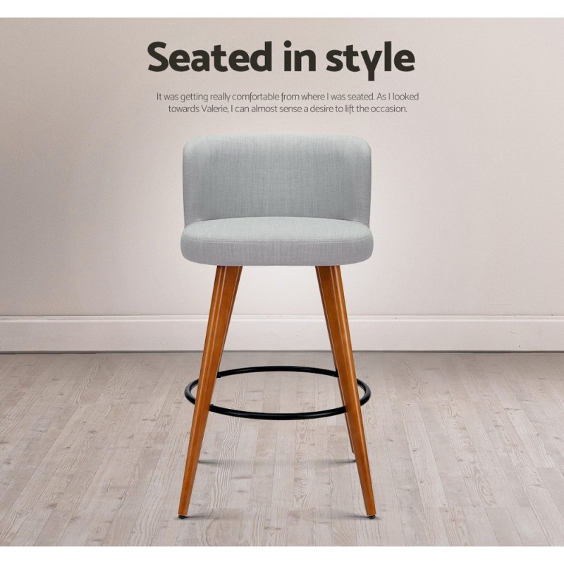 Elevate your kitchen or bar space with the Artiss 4x Bar Stools in Light Grey. Crafted from solid plywood with a stunning finish, these stools feature a thick faux linen padded seat and a curved, mid-height backrest for superior comfort and support. The powder-coated steel footrest adds style and durability, while anti-slip floor protectors safeguard your floors. Combining wood, metal, and soft polyester, these stools blend seamlessly into any modern home for both elegance and everyday practicality.