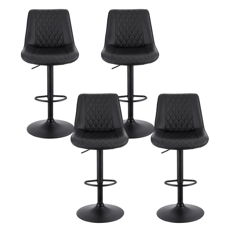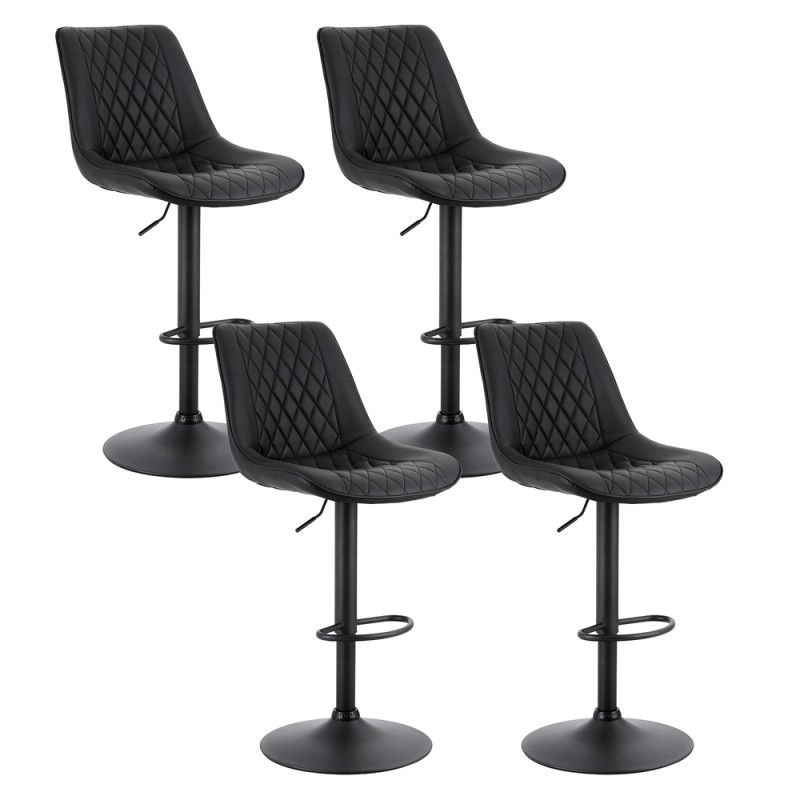 Enhance your seating experience with the Artiss 4x Bar Stools Kitchen Swivel Gas Lift Counter Chair in Diamond Leather Black. Combining modern style with ergonomic comfort, these stools feature a distinctive diamond design and adjustable height from 96-116cm, thanks to the reinforced gas lift cylinder. The premium PU leather seats are not only soft and durable, but also easy to clean. Built with sturdy metal construction, each stool supports up to 120kg. The semicircular footrest and anti-slip floor protectors ensure stability and protect your floors. Ideal for kitchens, cafés, or pubs, these stools are simple to assemble and elevate any space with ease.