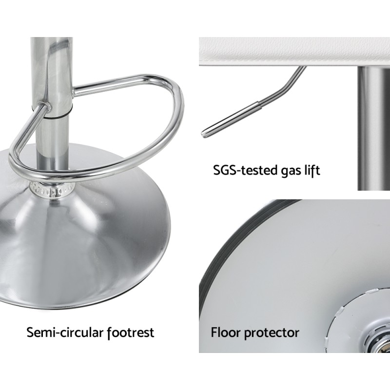 Enhance your modern home with the Artiss Wade Bar Stool set, perfect for your kitchen island, bar, or dining area. These stools offer luxurious comfort with thick high-resistance foam and premium white PU leather. Enjoy a 360-degree swivel, adjustable height, and a sturdy steel base with a semi-circular footrest. The anti-slip floor protector ensures stability and prevents floor scratches. Easy to clean and assemble, these stools are a stylish and practical addition to any space.