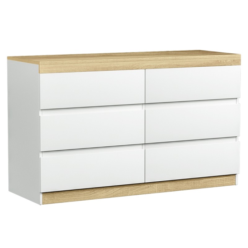 Enhance your bedroom with the Artiss 6 Chest of Drawers Cabinet Dresser Table Tallboy in White. Boasting a contemporary two-tone design, this dresser features six spacious drawers equipped with smooth, anti-rust coated metal runners for effortless organisation. Crafted from high-density particle board for lasting durability, it offers ample storage and a sleek finish to complement any decor. Perfect for keeping your space tidy, this chest of drawers is a stylish and practical addition to your home.