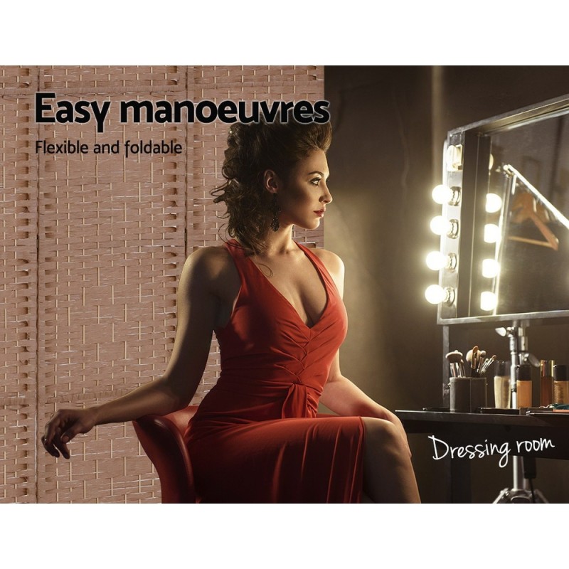 Transform your space effortlessly with the Artiss 6 Panel Room Divider Screen. Perfect for creating private spaces or unique partitions at events, this chic divider blends style and function. Made from solid New Zealand pine and hand-woven rolled paper, it mimics a rattan look while being eco-friendly and durable. Lightweight yet sturdy, it features foldable panels for easy storage and two-way metal hinges for flexibility. Available in 4, 6, or 8 panels to suit your needs.