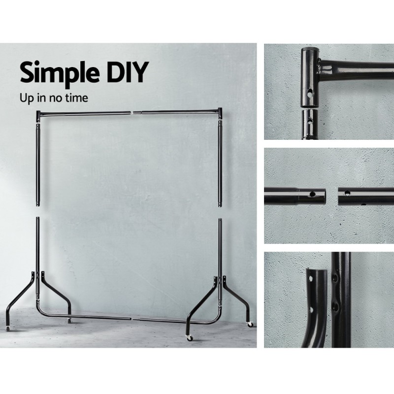 Introducing the sleek and versatile Artiss Clothes Rack Airer Coat Stand - a 6FT black metal garment display rail that seamlessly combines style and functionality. Perfect for your bedroom, wardrobe, or retail space, this rack boasts a robust powder-coated steel structure that can support up to 60kg. Its anti-slip design ensures hangers stay in place, while four smooth-rolling castors, including two lockable ones, provide effortless mobility. Designed for simplicity and practicality, this space-saving rack is easy to assemble and promises durability with its anti-corrosion and rust-resistant features.