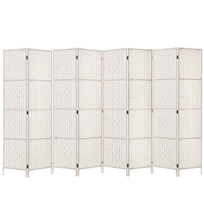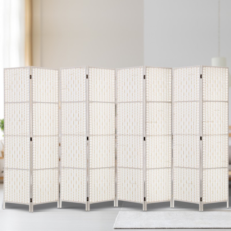 Transform your space effortlessly with the Artiss 8 Panel Room Divider Screen. Measuring an expansive 326x170cm, this woven white divider offers instant privacy and style with its exotic design. Crafted from solid poplar wood, it boasts non-toxic, fade-resistant, waterproof, and breathable qualities. The panels are made from hand-woven rolled paper, mimicking the look and feel of rattan. Lightweight yet robust, the divider features two-way metal hinges for durability and easily folds for space-saving storage. With its elegant presence, it's the perfect addition to any room.