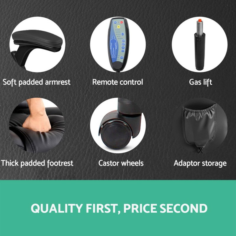 Experience ultimate comfort and productivity with the Artiss 8-Point Massage Office Chair. Upholstered in premium PU leather, this high-back recliner features an ergonomic S-shape design, thick multi-layer padding, heated lumbar support, and a wired remote for soothing, customised vibration massage. Choose from five massage modes, four intensity levels, and three timer settings. Adjust height, tilt, and swivel with ease—perfect for long workdays or relaxing breaks.