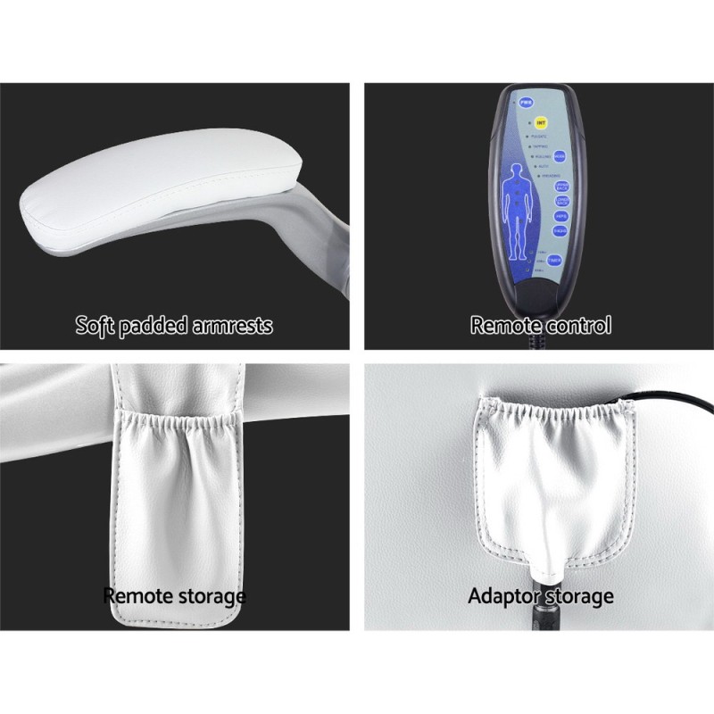 - Eight massage points: Upper back, lower back, hips, and thighs