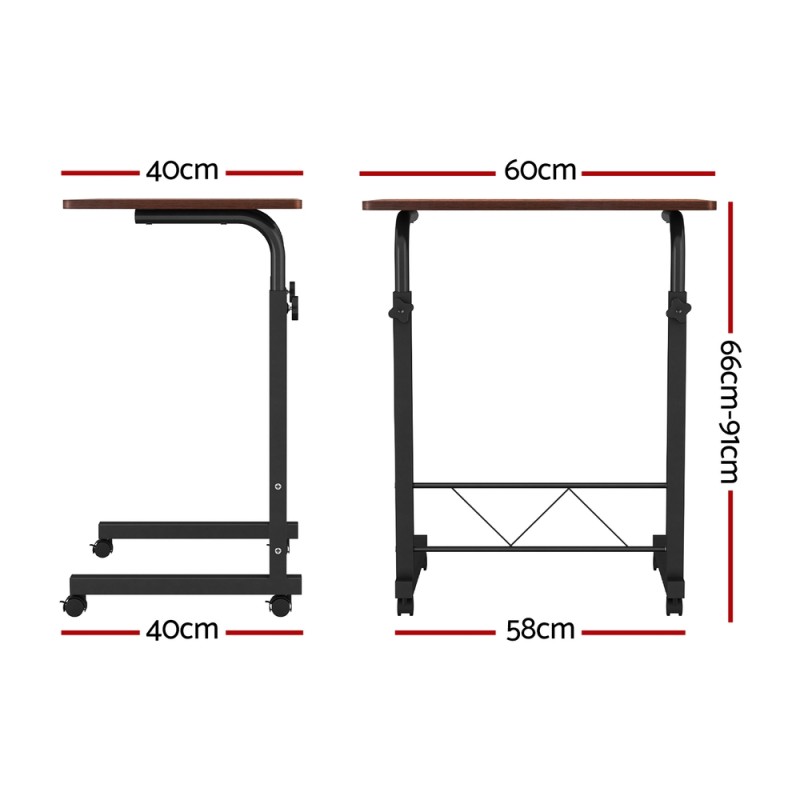 Revolutionise your workspace with the Artiss Laptop Desk Table, Adjustable 60CM in Dark Wood. Crafted to be both strong and lightweight, this versatile mobile desk offers a spacious 60cm x 40cm surface for efficient, clutter-free work. Its height adjusts from 66cm to 91cm, while the innovative U-shape design seamlessly fits over sofas and beds for ultimate comfort. Move easily with 360-degree rotating castor wheels, or secure them with locks for stability. Built with a robust 17mm MDF board and a sturdy powder-coated H-shape steel frame, this desk is your ideal partner for any task.