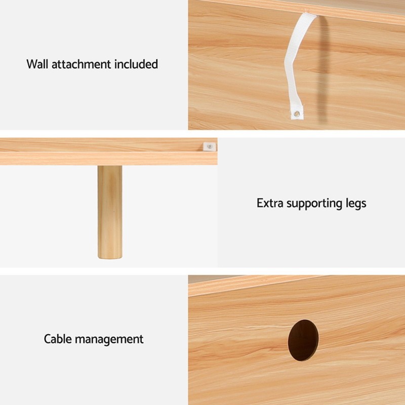 Discover the perfect blend of style and functionality with the Artiss Alex Entertainment Unit. This lowline TV cabinet offers ample storage with its two cabinets, spacious drawer, and open shelf, making it ideal for all your entertainment essentials. Crafted from durable particleboard with a melamine finish and solid pine legs, it ensures longevity. The push-to-open design and wood-grain finish complement any modern home. Plus, with cable management and extra support legs, it’s both practical and stylish.