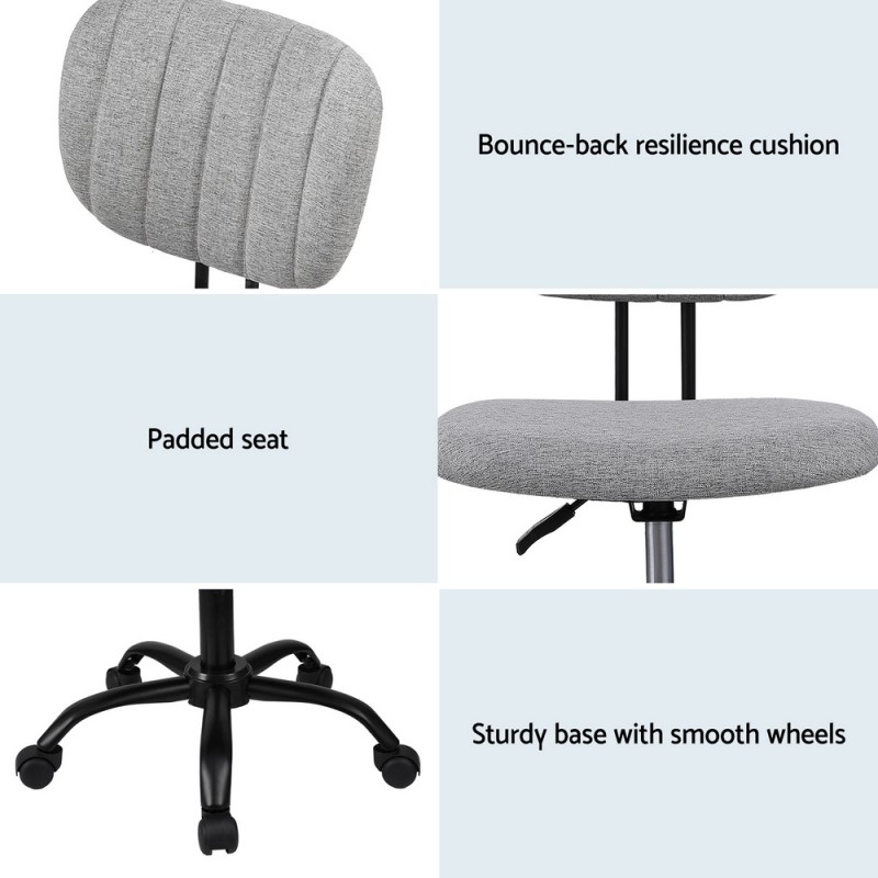 Transform your workspace with the Artiss Armless Office Chair, engineered for the perfect blend of comfort, support, and functionality. Crafted with premium breathable fabric, this ergonomic chair offers a cool and comfortable seating experience. Its 10cm adjustable seat height ensures a perfect fit for any desk, while the space-saving armless design allows it to slide effortlessly under tables, making it ideal for home offices or study nooks. With a sturdy frame and 360° swivel castors, enjoy smooth movement and reliability. Quick assembly with included tools means it's ready to use in minutes, backed by a 1-year warranty.