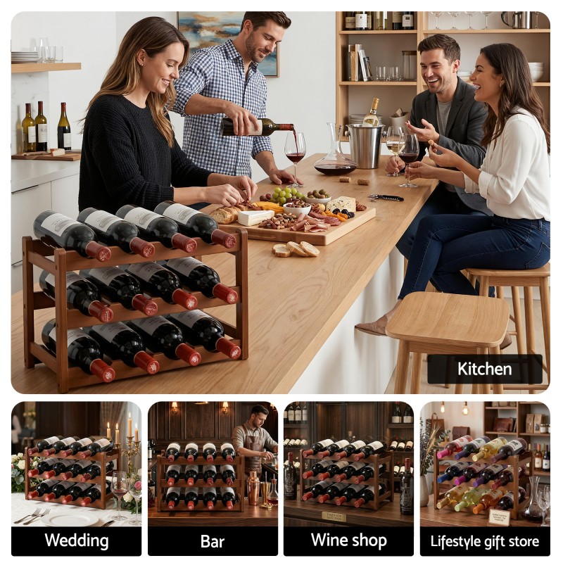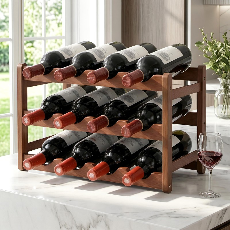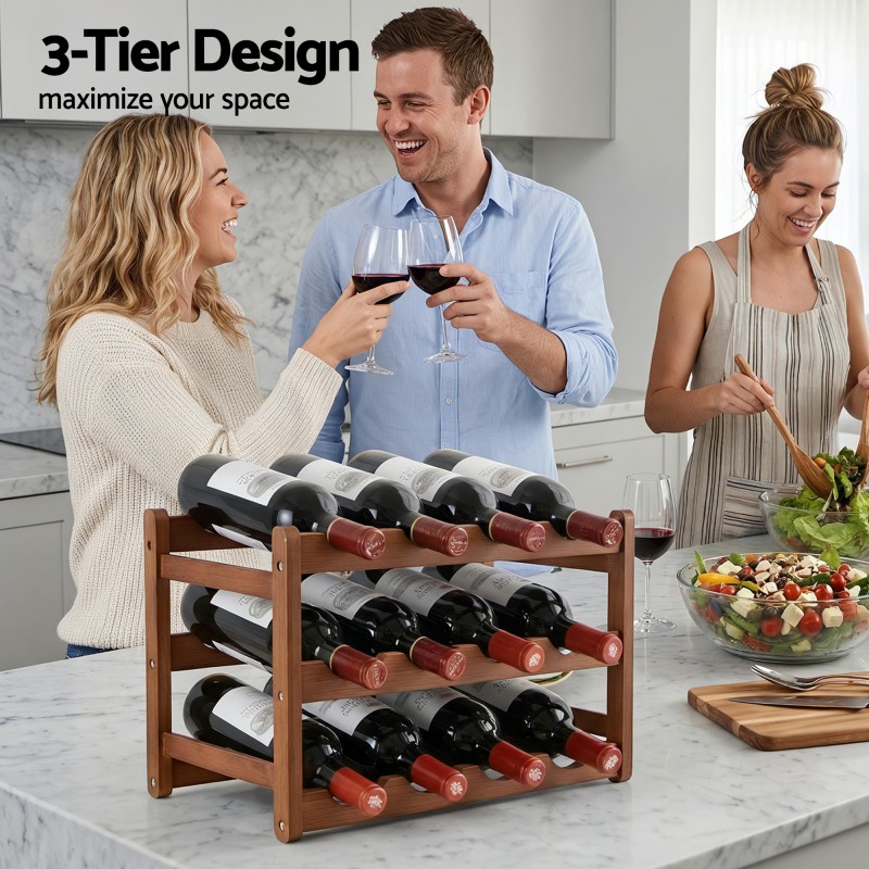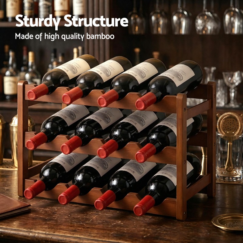 Bring order and style to your kitchen or home bar with the Artiss 3-Tier Bamboo Wine Rack. This freestanding countertop organiser holds up to 12 bottles in a compact vertical design that saves bench and cupboard space. Crafted from natural bamboo with contoured wave-bars to cradle bottles securely the walnut finish adds a warm modern touch to any room. Simple assembly means it’s ready to use quickly for displaying or storing your favourite wines.