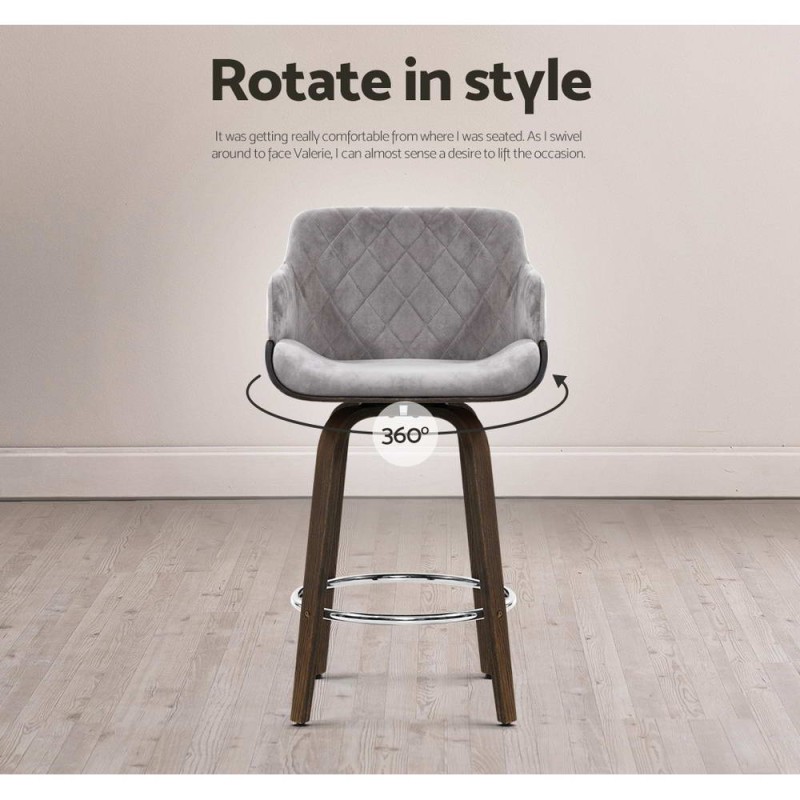 Introducing the Artiss Bar Stools Swivel Velvet Padded Wooden – a blend of sophistication and comfort crafted for royalty. This meticulously designed bar stool features a luxurious puckered velvet seat and a contoured backrest, ensuring unparalleled comfort and a regal appearance. Constructed with solid plywood and accented with a chrome footrest, this stool offers both durability and style. The 360-degree rotatable seat adds versatility, while the anti-slip rubber feet protect your floors. With easy assembly and a weight capacity of 150kg, this grey, velvet bar stool is the perfect addition to any space.