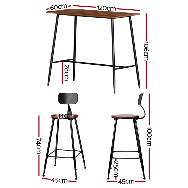 Elevate your dining or entertainment space with the Artiss Bar Table and Stools Set. This stylish set blends industrial strength with a sleek modern design, perfect for any kitchen, bar, or dining area. The bar table boasts a reinforced steel frame and T-shape structure, offering a 120kg weight capacity and featuring a stunning wood grain tabletop. The stools, with their solid seat tops and removable backrests, allow for versatility and comfort. Equipped with heavy-duty fixings and anti-slip feet, this durable set ensures stability and safety. Easy to assemble and backed by a 1-year warranty, Artiss combines functionality with elegance.
