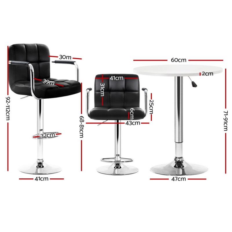 Upgrade your space with the Artiss Bar Table and Stools Set, a perfect blend of contemporary style and functionality. The sleek bar stools feature a 360-degree swivel and height-adjustable SGS-certified gas lift for personalised comfort. With a sturdy base and floor protectors, this set ensures stability and surface care. Enjoy easy-to-clean surfaces and accessible gas lifts for hassle-free maintenance. Ideal for both indoor and outdoor settings, this versatile set suits residential or commercial use, offering durability and modern design in one sleek package. Plus, it comes with a 1-year warranty for peace of mind.