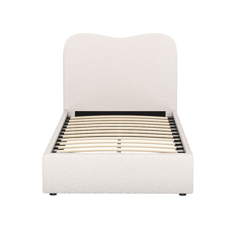 Transform your bedroom with the Artiss Bed Frame Single Size Boucle DARA. This elegant piece is upholstered in luxurious boucle fabric, providing a sophisticated touch to any decor. Its wooden frame with slat support ensures durability, while the padded headboard and smooth edge finish offer comfort and style. Sturdy metal connectors add to its robust structure. Perfect for those seeking a blend of aesthetics and functionality.