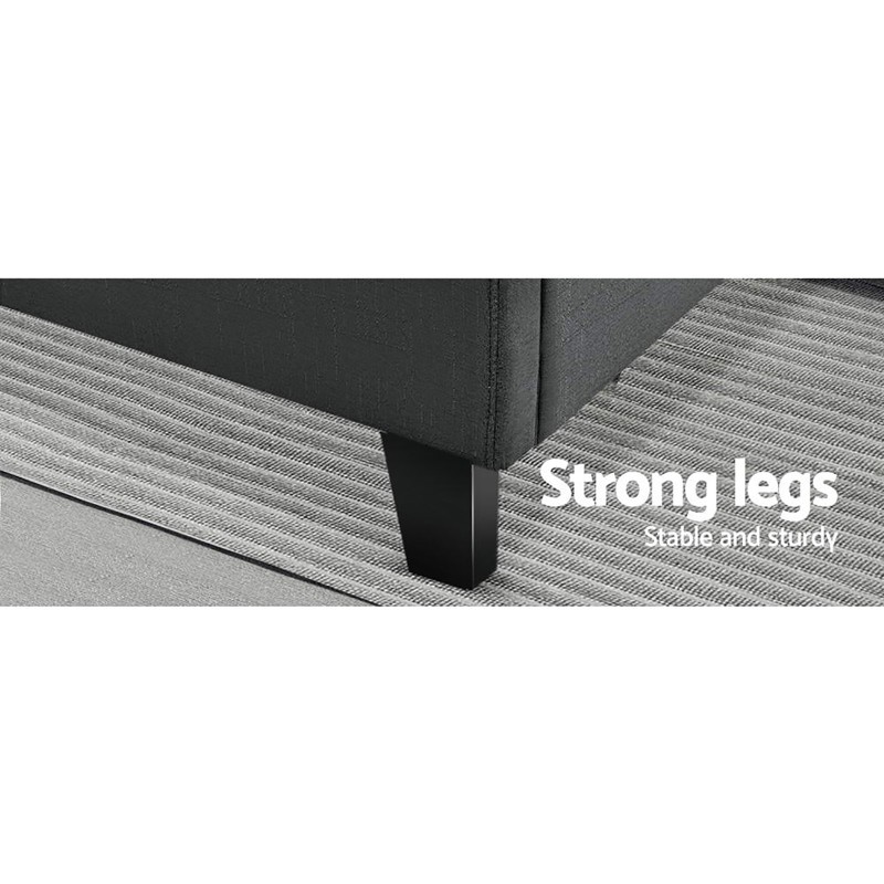 Elevate your sleep experience with the Artiss Tino Queen Bed Frame in Charcoal. This modern masterpiece features premium faux linen fabric, a plush panel bedhead, and high-density foam padding for ultimate comfort. With a solid wood frame and arched slat base, it evenly distributes weight for a restful sleep. Heavy-duty metal connectors ensure stability, while easy assembly makes it a breeze to set up. Designed for standard Queen mattresses, it promises sweet dreams night after night.