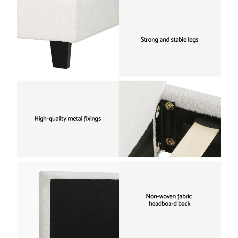 - Artiss frame: premium white bouclé fabric
