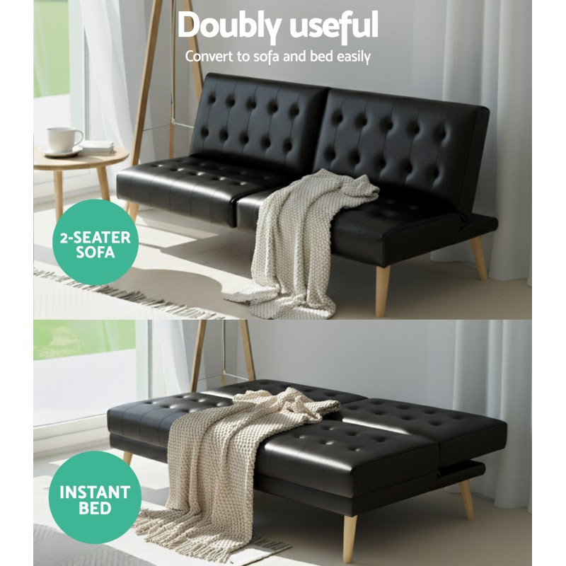 Introducing the Artiss Sofa Bed Couch 1 Seater Lounge in elegant black, where style meets versatility. Snuggle up in this plush recliner, expertly crafted with a sturdy wooden frame and upholstered in breathable faux linen fabric. Its tufted design and thick seat cushioning promise soft, wear-resistant comfort. The innovative backrest offers three adjustable positions, transforming it from a luxurious single couch to a spacious multi-seater or ottoman. Pair multiple units for a modular setup, easily converting into a bed for overnight guests. Solid rubber wood legs provide natural elegance and strong support, while easy assembly makes this piece a must-have for any modern home.