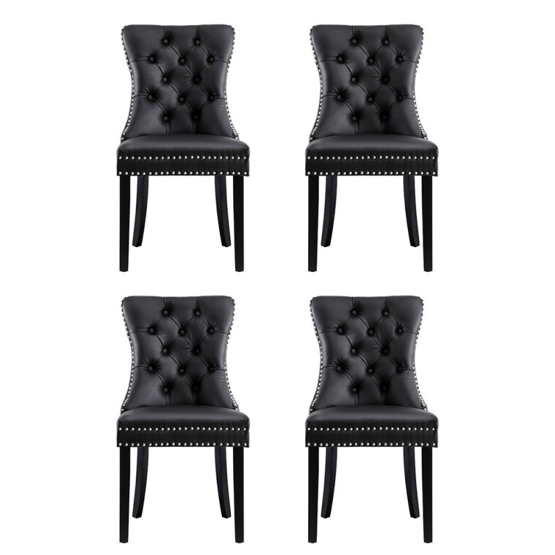 Elevate your dining space with the Artiss Set of 4 Dining Chairs, designed to infuse timeless charm into your home. Choose between luxurious PU leather or plush velvet upholstery, both complemented by a button-tufted backrest and rivet edging for a sophisticated touch. Each chair is crafted with a cushioned backrest filled with high-resilience foam, ensuring exceptional comfort for meals and gatherings. Supported by sturdy rubberwood legs with anti-slip feet, these chairs blend style and practicality effortlessly. Easy to assemble and boasting a 150kg weight capacity, they are a stunning addition to any dining room, backed by a 1-year warranty.