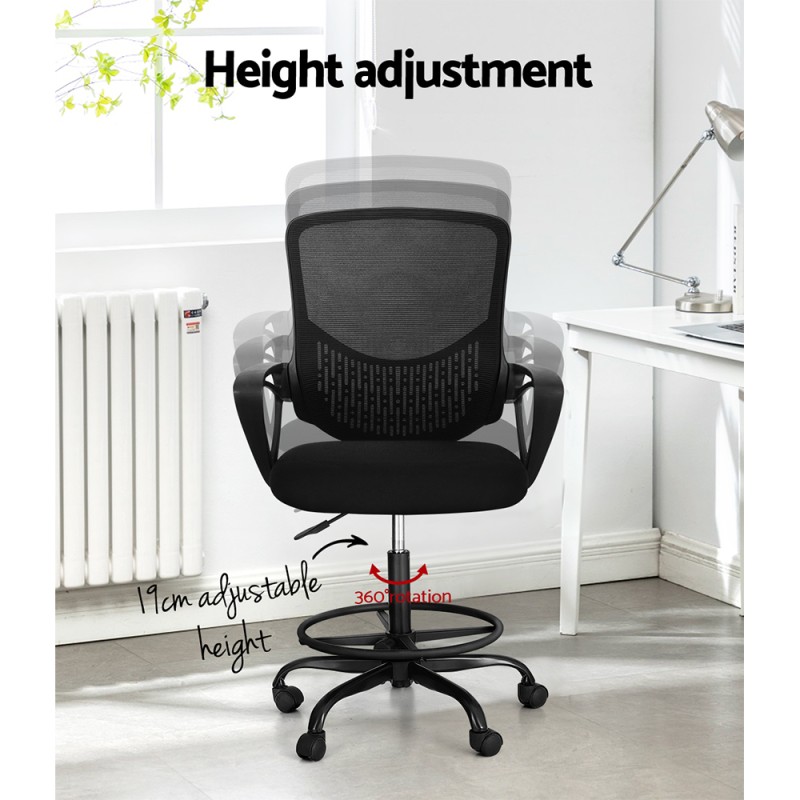 Stylish, sleek, and practical, the Artiss Office Chair Drafting Stool is perfect for drafting work or artistic pursuits with its functional and timeless design. The thick padded seat ensures comfort, while breathable mesh upholstery allows for long hours of use. The contoured backrest supports posture, and the height can be adjusted to suit your needs. With a 360-degree rotation and an adjustable chrome footrest, it offers ultimate comfort. Dual-wheel castors ensure easy mobility. Enhance your workspace with the Artiss Drafting Chair today.