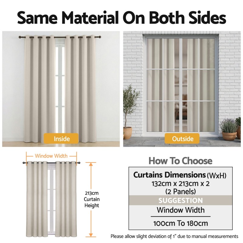 Refresh any room with Artiss Blockout Curtains in Beige. Made from 230GSM triple weave polyester these eyelet drapes reduce around 80% of incoming light while helping to stabilise indoor temperatures. Each set includes two generous panels with stainless steel eyelets for smooth hanging and easy machine washing for simple care. Ideal for bedrooms nurseries home theatres rentals and Airbnb properties seeking a clean practical look with thermal and noise reducing benefits.
