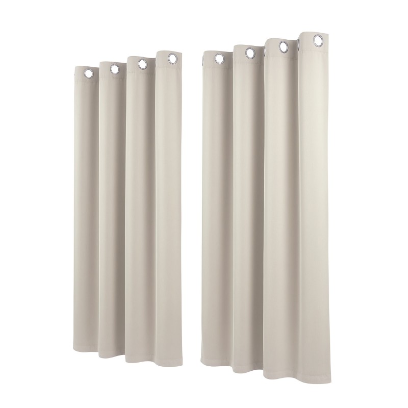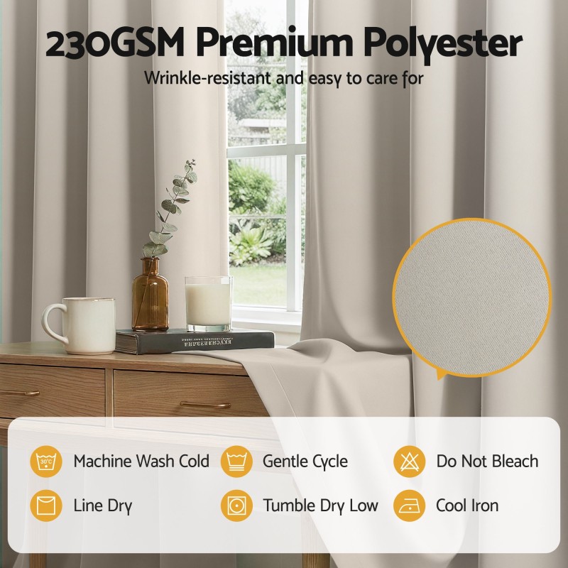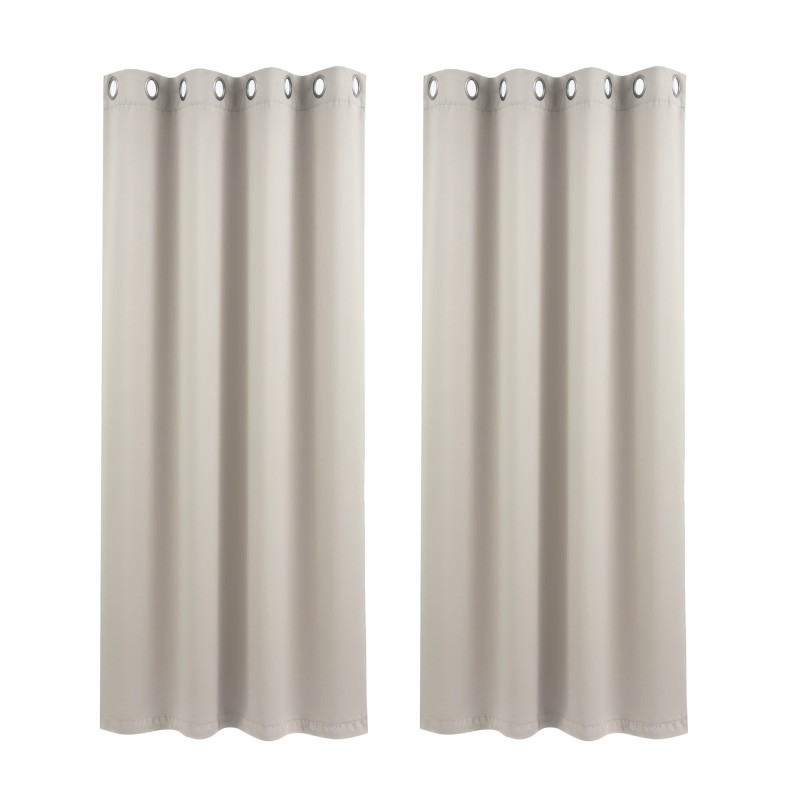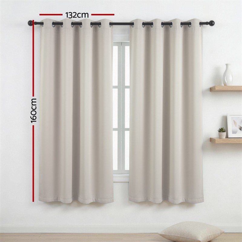 Refresh your home with Artiss Blockout Curtains in beige. Made from 230GSM triple weave polyester these eyelet drapes reduce glare and provide thermal insulation to help keep rooms cooler in summer and reduce heat loss in winter. Each set includes two panels 132cm wide by 160cm drop with eight 40mm stainless steel eyelets per panel for smooth hanging on standard rods. The high density fabric blocks approximately 80% of incoming light improves privacy and helps reduce outside noise while remaining machine washable for low maintenance.