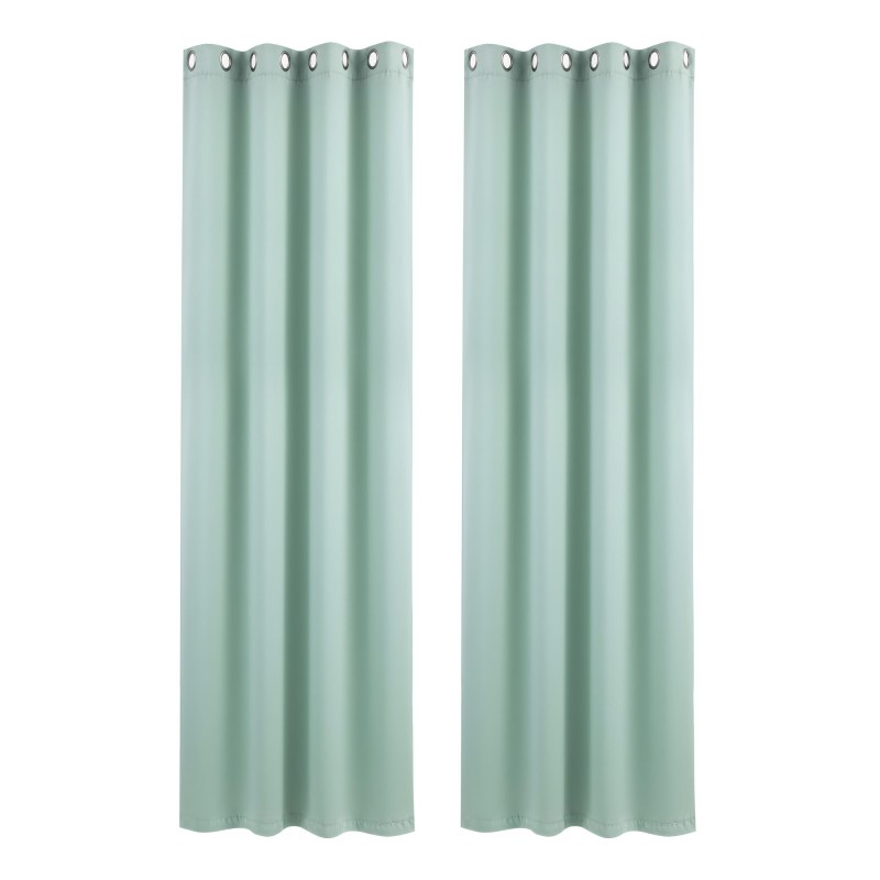 Refresh your home with the Artiss Blockout Curtains in green. Made from dense 230GSM triple weave polyester these eyelet panels reduce glare block around 80% of incoming light and help insulate rooms to keep temperatures more stable. Each set contains two machine washable panels 132cm wide by 213cm drop with reinforced edges and smooth 40mm stainless steel eyelets for easy installation on standard rods.